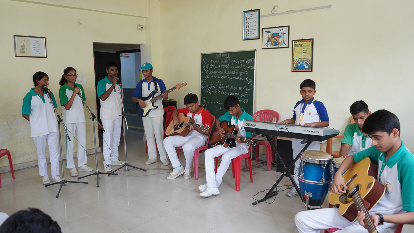 A contemporary setting like ours is important for all the students to reinforce brain development, grow human connection and relieve stress. While it is a known fact that listening music enhances reading comprehension abilities in children; it is also the master of various other traits like discipline, harmony, practice and team work. One can also choose to learn and play musical instruments like Tabla, Harmonium, Drums, Guitar and Keyboard among others.