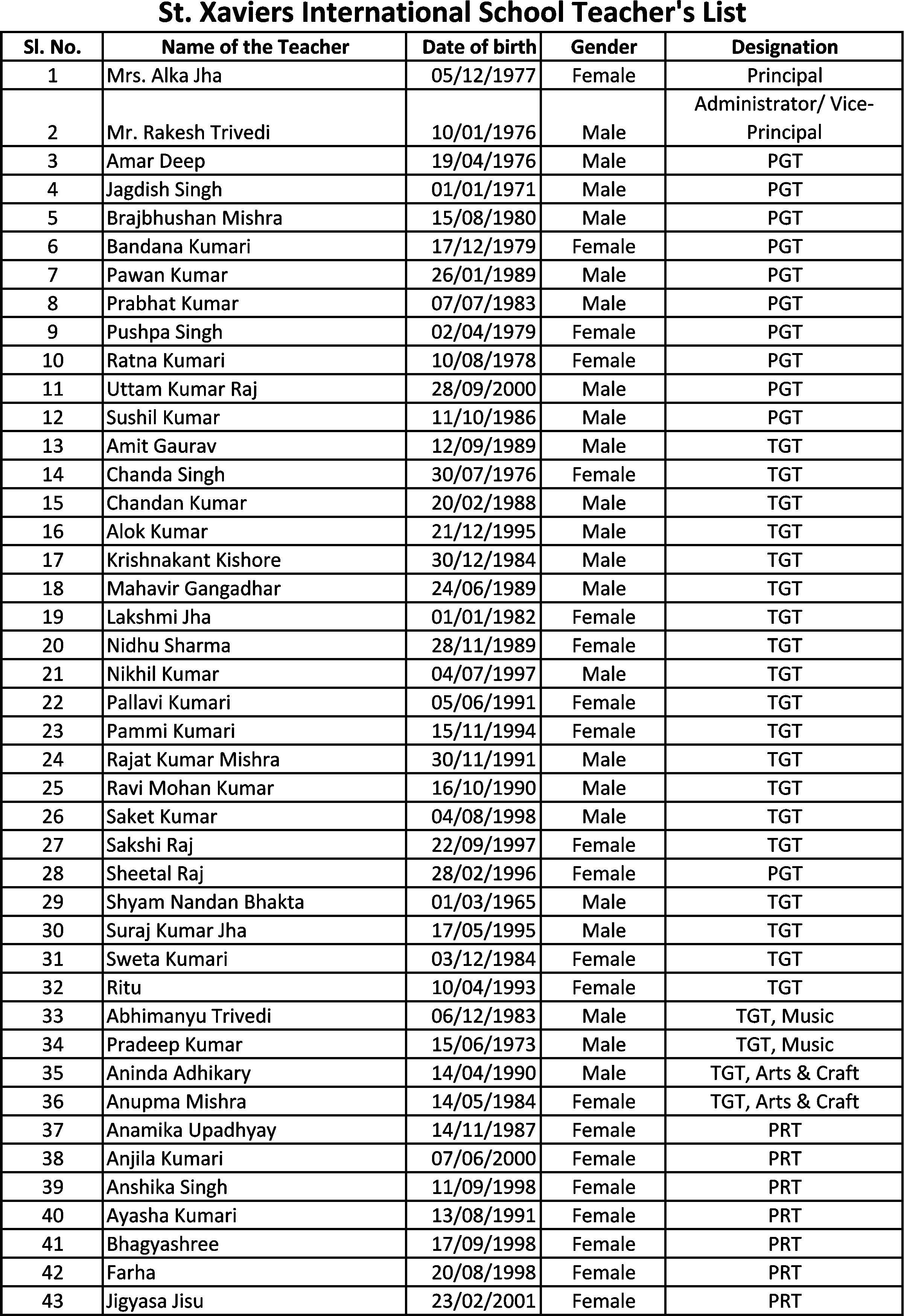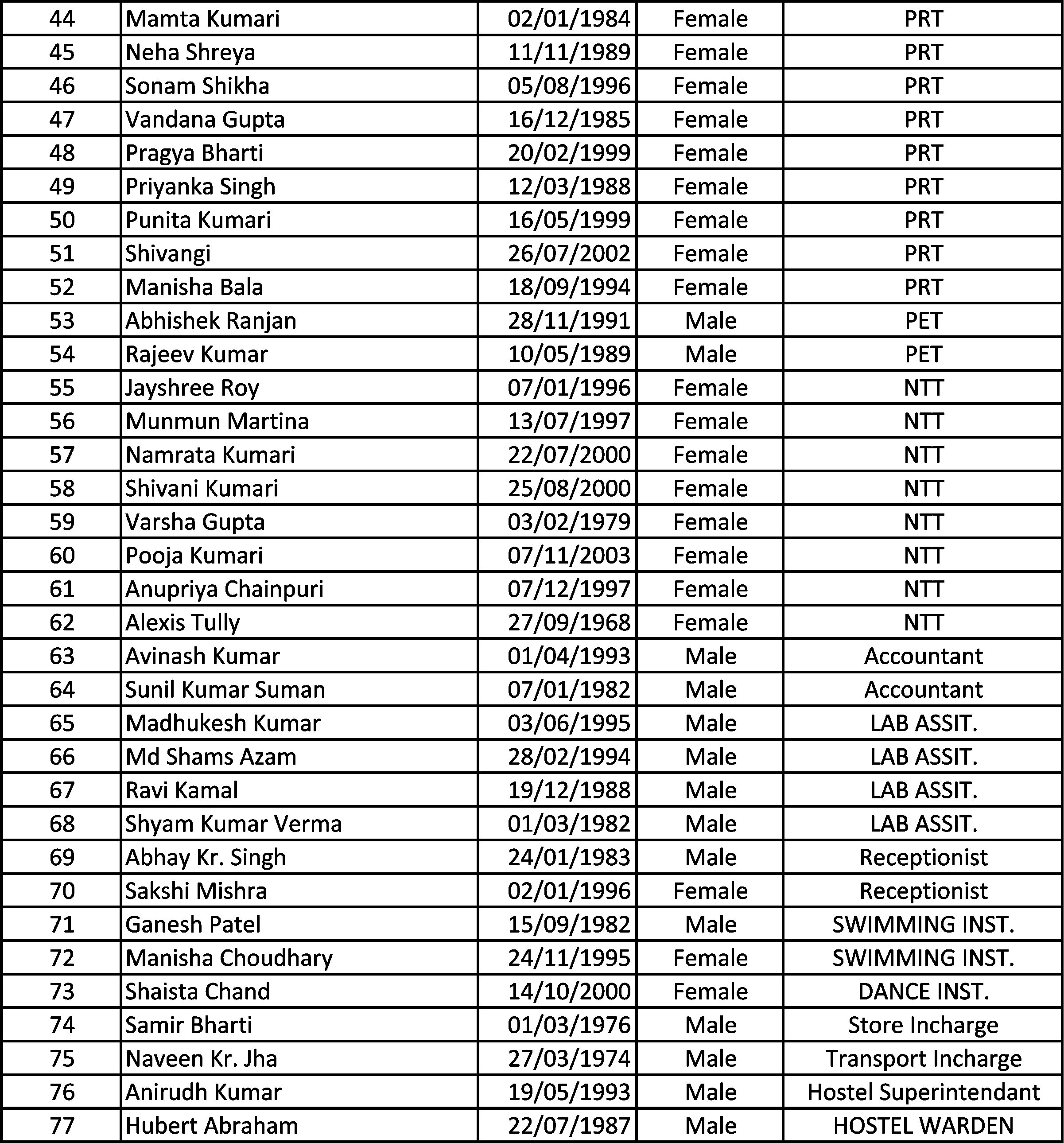 Teaching Staff List